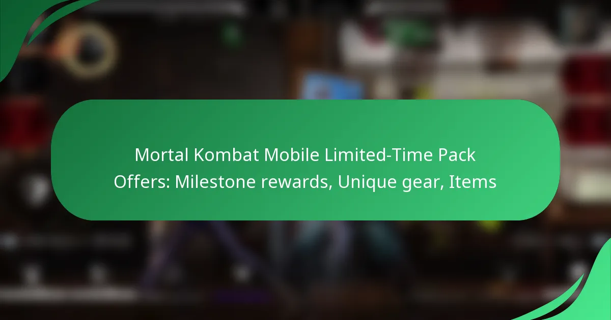 Mortal Kombat Mobile Limited-Time Pack Offers provide players with exclusive bundles that enhance their gaming experience through unique gear, items, and milestone rewards. These special packs are ava...